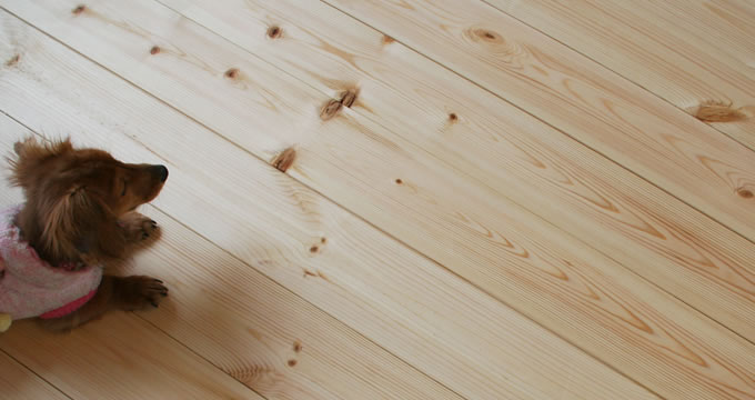 無垢材の良さはそのままに、特別のシリカコート剤にて塗装します。無垢の質感や呼吸活動を妨げることないペット対応フローリングです。