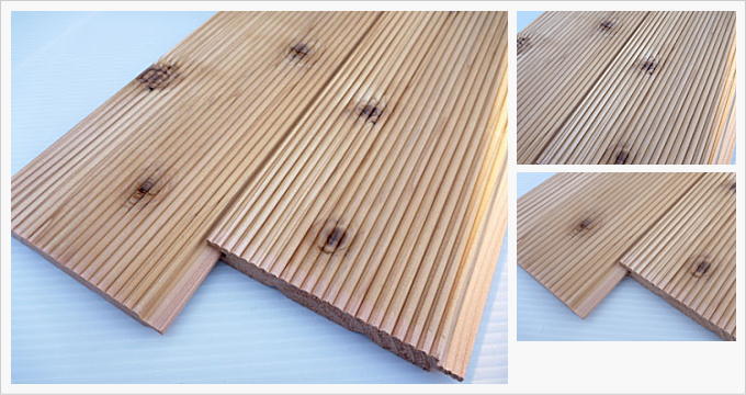 杉の表面に凹凸のあるリブ加工を施した羽目板です。壁材などでは、無垢材の良さを活かしながら、個性ある雰囲気を作ります。