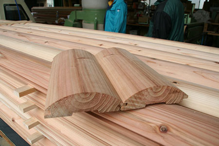 万博用に加工型(モルダー刃)もつくり製作しました。通常の型より厚みと丸みがでてますね。